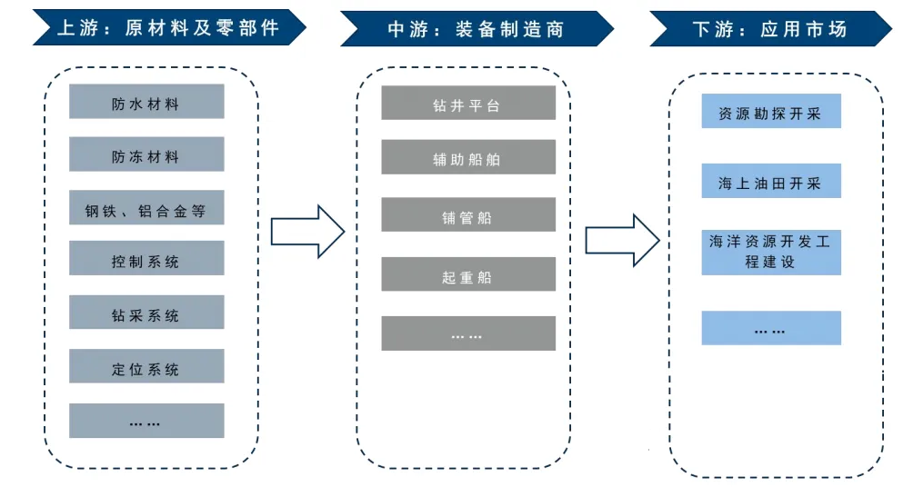海洋工程装备下游:涵盖海洋油气资源勘探开采、海上油田开采、海洋资源开发工程建设等应用市场。